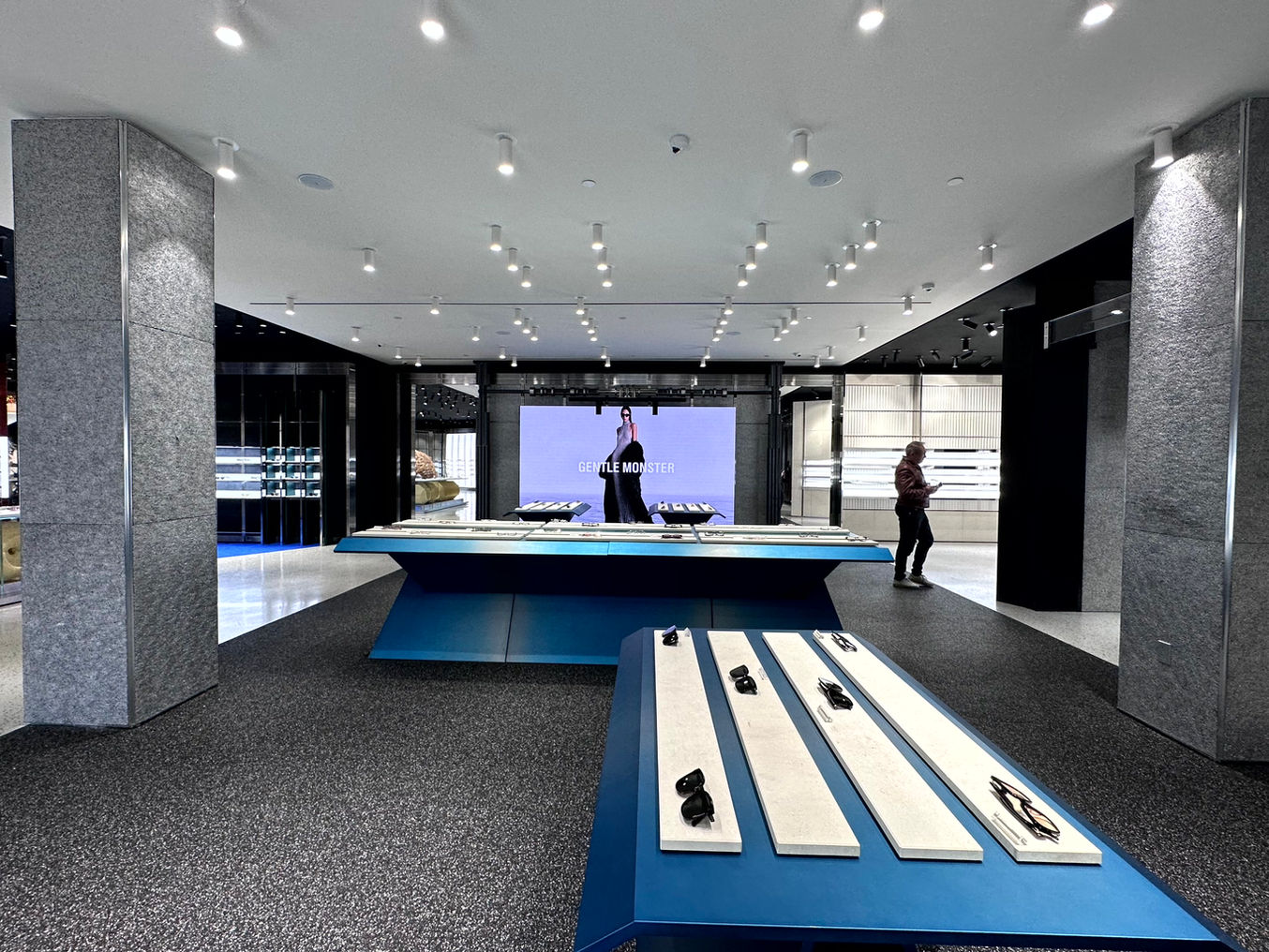 A full immersion experience is the focus of the third Gentle Monster store in California: the product becomes part of an art gallery, lit by a sky of spotlights and spatially identified by the change of materials used on both floors and walls.
